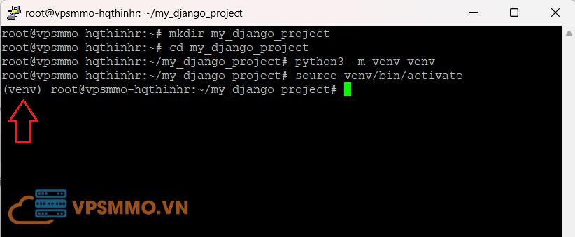 Khi kích hoạt, bạn sẽ thấy (venv) trước dấu nhắc lệnh.