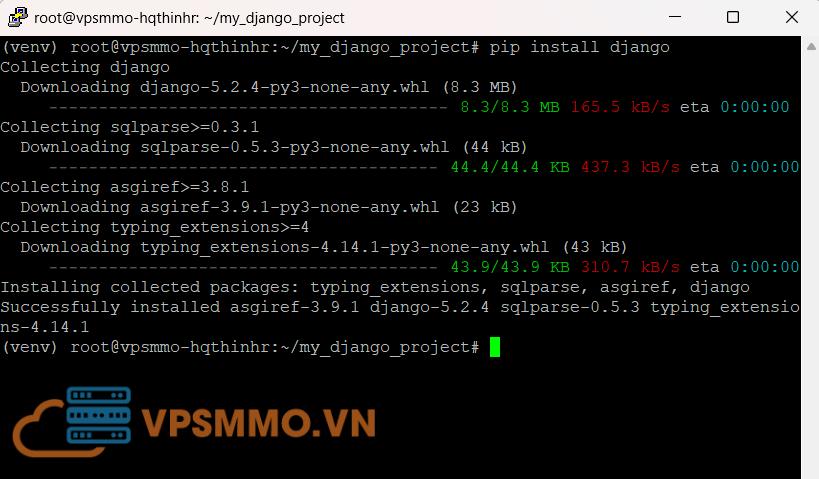 Trong môi trường ảo, cài đặt Django bằng pip: