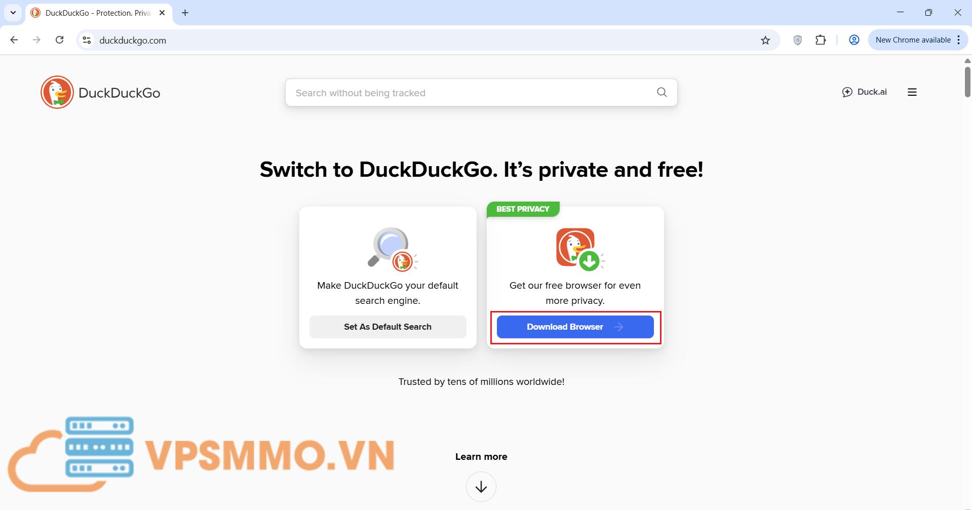 Cuối cùng, hãy trải nghiệm duyệt web riêng tư và hiệu quả với DuckDuckGo.