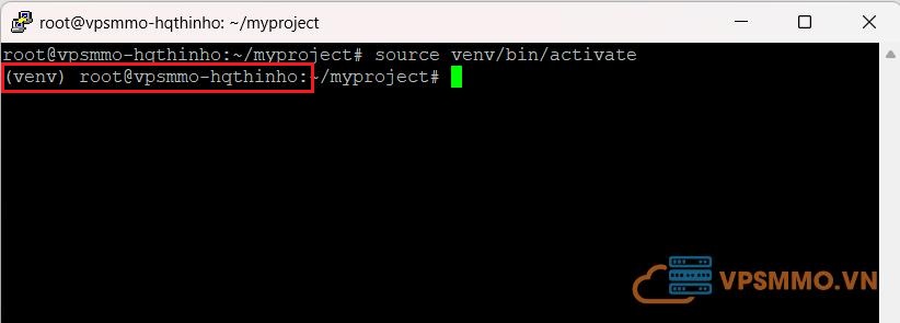 Khi môi trường ảo được kích hoạt, bạn sẽ thấy tên môi trường (ví dụ: (venv)) xuất hiện trước dấu nhắc lệnh trong terminal.