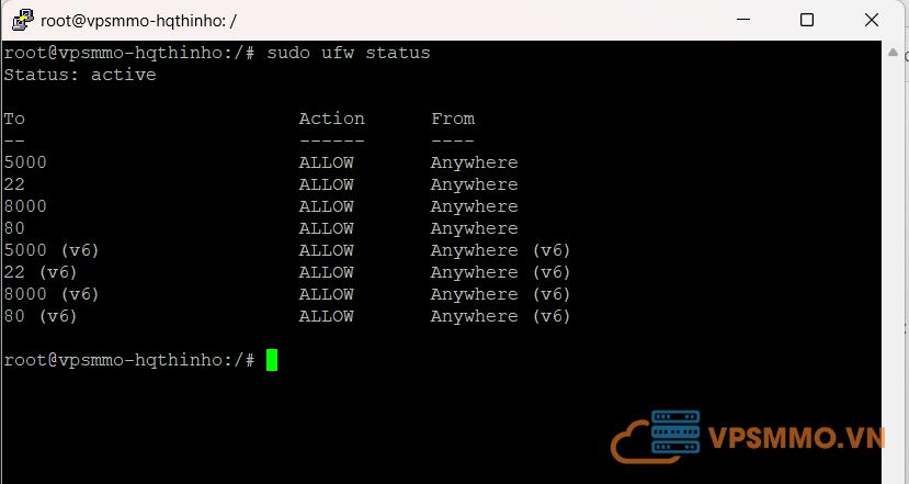 Đảm bảo các cổng 22, 80, 5000, và 8000 đã được mở.