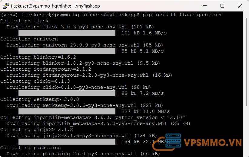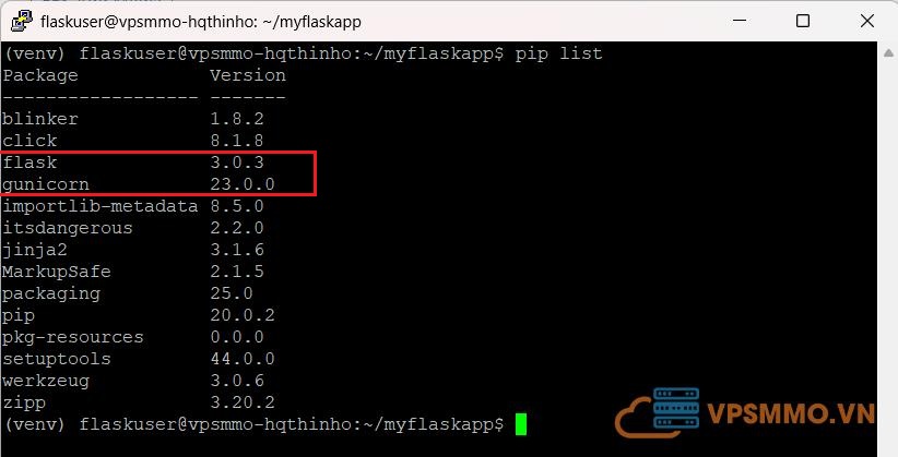 Kiểm tra Flask và Gunicorn đã được cài đặt chưa bằng lệnh: pip list